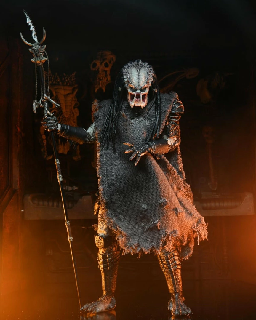 A long-awaited addition to NECA’s Ultimate Predator line, welcome Shaman! After he defeats the City Hunter in Predator 2, detective Mike Harrigan encounters more members of the Lost Tribe, including a mysterious Predator who carries a distinctive staff.