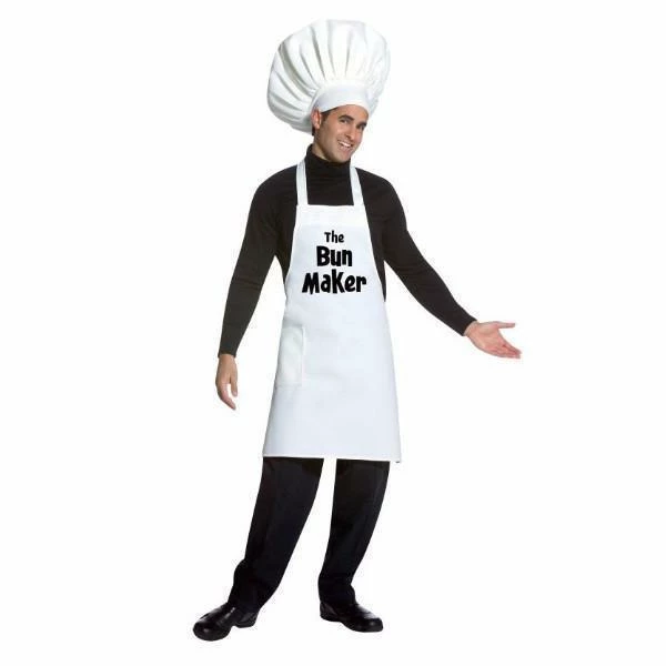 Here is a great costume for men and women with a sense of twisted humour who also love to grill. This one of a kind costume is suitable for men and women and consists of a classic chef’s apron with the title Bun Maker printed on the front. An oversized chef’s hat completes a chef’s outfit that is sure to generate fun times for years to come. This Bun Maker Costume for Adults is a nice play on word.