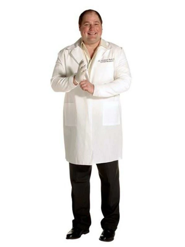 The doctor is in! Don your best white lab coat and show up at the next Halloween party as your favorite gynecologist. This Doctor’s costume features a white lab coat. This simple, easy and comfortable Men’s Plus Size Dr. Seymour Bush Gyno Costume will certainly spark a few conversations as you make your rounds around the room. Add to this great doctor’s costume by purchasing a metal stethoscope to make the perfect final touch.Â