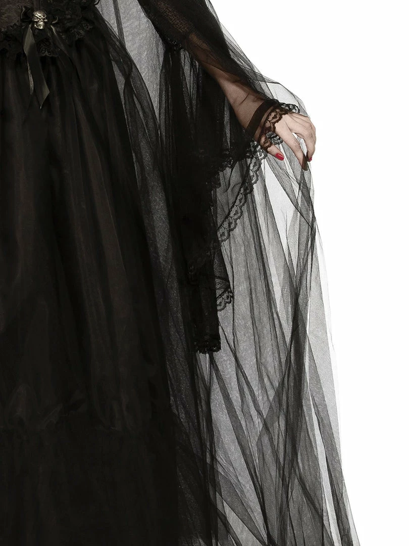 Drama will follow you as you float by in this spectre-like cape in black netting. Part of our Ladies Halloween Mix and Match range, complete any Halloween costume with this dramatic full length hooded piece.