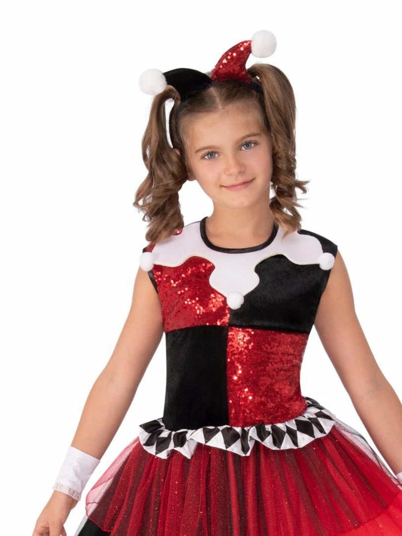 - Dress with red sequin and black velvet bodice in iconic checker pattern, plus tutu skirt with layers of glitter tulle and a tulle underskirt