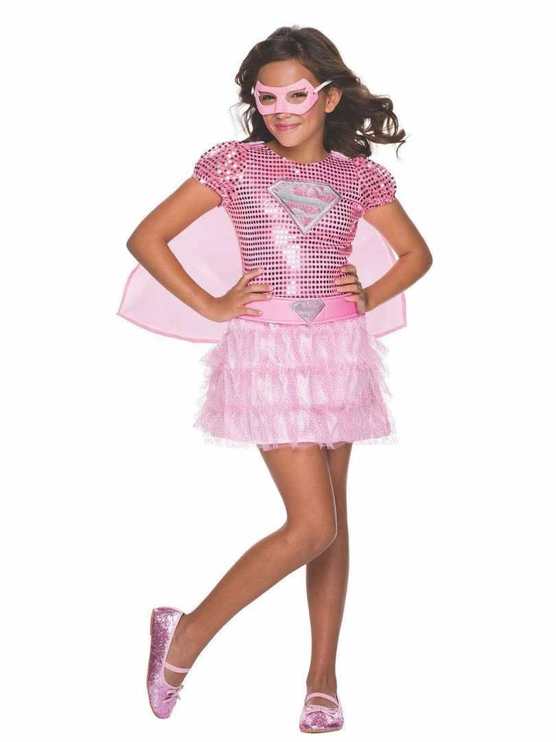 There’ll be no missing this Super girl as she makes the cover of The Daily Planet! Every girl loves pink, and with sparkly sequins, silver belt and super “S” to match, your powers will really wow your friends every time you appear.