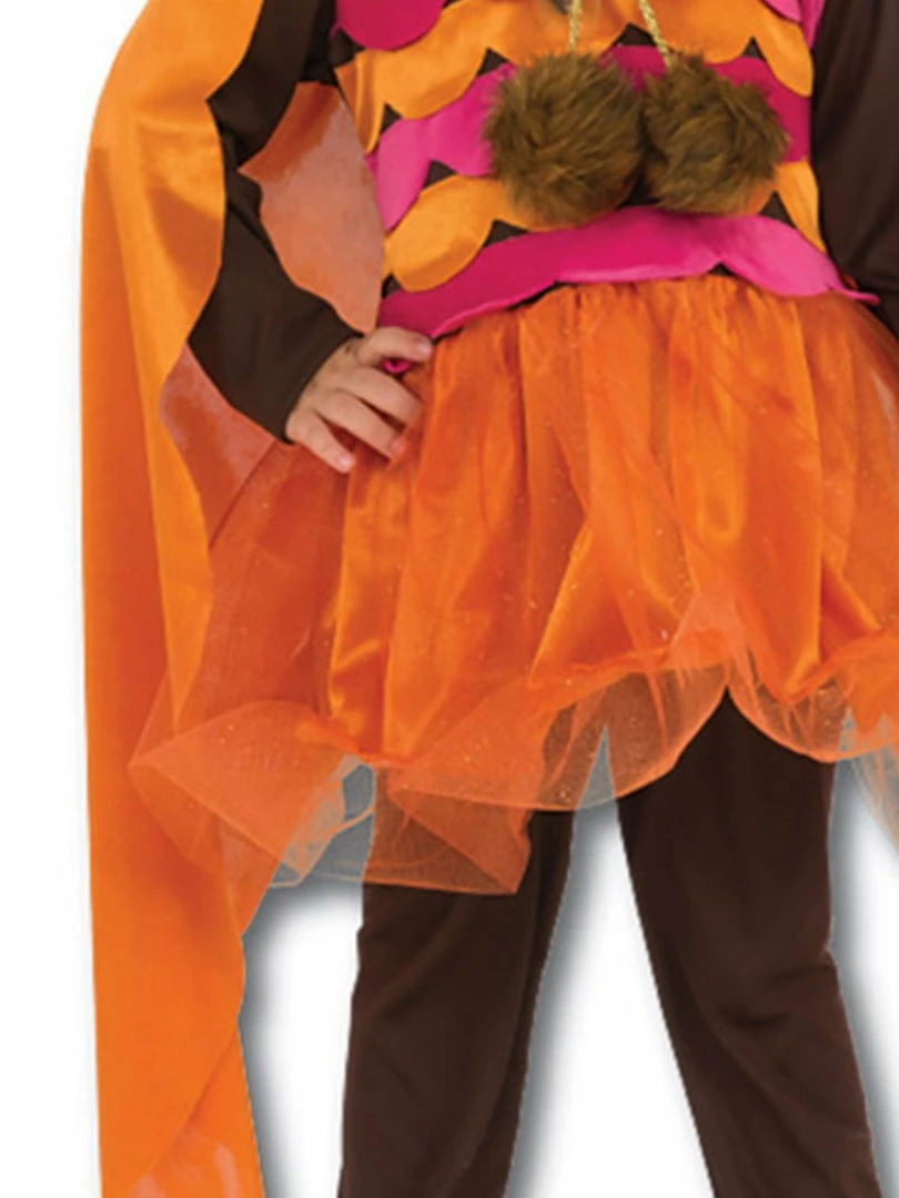 - Owl dress has bodice layered with shaped panels to give feathered chest impression plus shoulders and neck with shaped fabric panel and glitter tulle layers