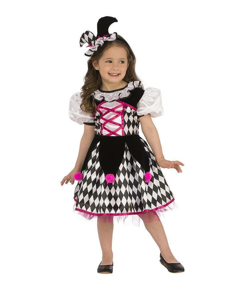 - Headband with ‘Fool’s Hat’ on top and satin ruffle with black trim plus pink bow decorations