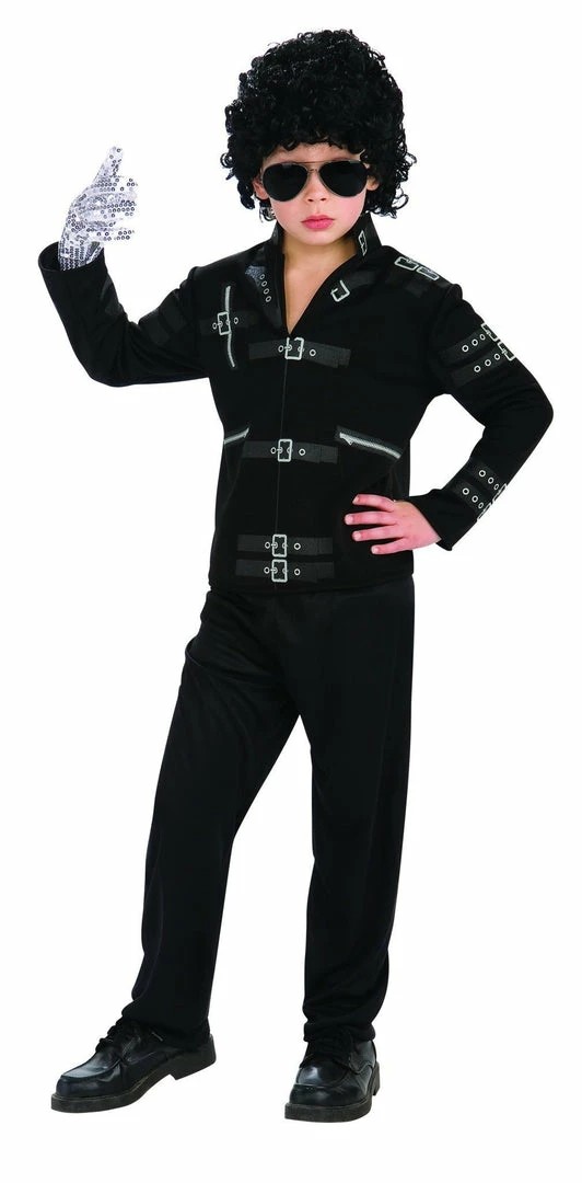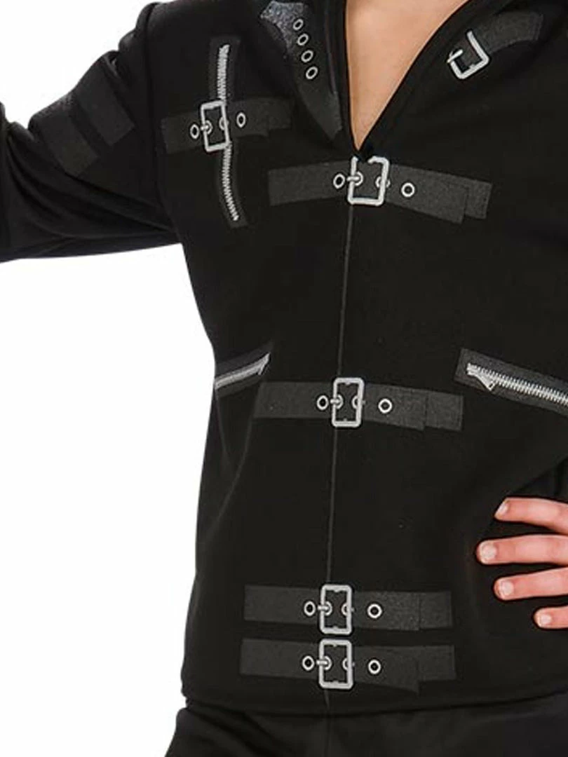 - Deluxe black trademark BAD jacket with front zipper closure and trademark belt buckle embellishments