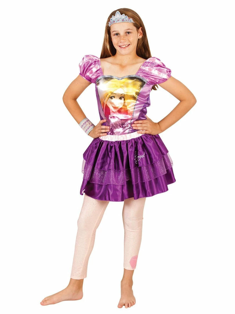 “Rapunzel, Rapunzel, let down your hair!” yells the dashing Huntsman Flynn Ryder. The Princess of Disney’s animated film “Tangled” (2010) with the famous long blonde, magical hair, Rapunzel’s story was inspired by the beautiful fairy tale from the Brothers Grimm. With chameleon friend Pascal by her side, she is locked in Mother Gothel’s secluded tower, awaiting her freedom. And along rides the rugged Eugene on his side-kick horse Maximus, to win the heart of the golden Princess. Together they must escape Rapunzel’s wicked mother and Eugene’s criminal past. For every girl who dreams big, there is a Princess to show her the way. So start living and achieving your dreams in this radiant Rapunzel costume top. Only you have the choice Princess, start living now!