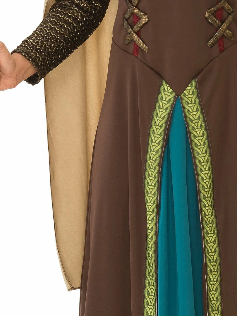 - Full length sleeves with chain-mail printed detail and cape with faux-fur trim on shoulders and chain link at front