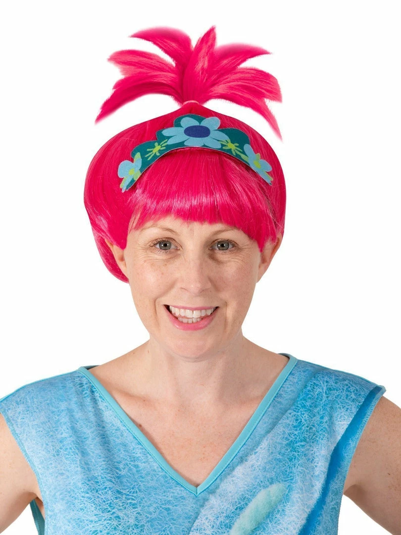 - Headpiece is a pink wig made from polypropylene hair strands with feature high pony tail and an attached digitally printed felt tiara with flower pattern