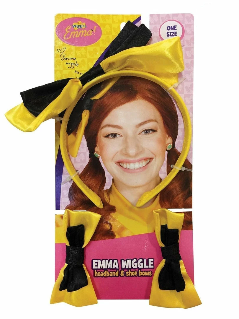 Complete your Emma Wiggle look with her trademark headband and attached bow and matching shoe bows!