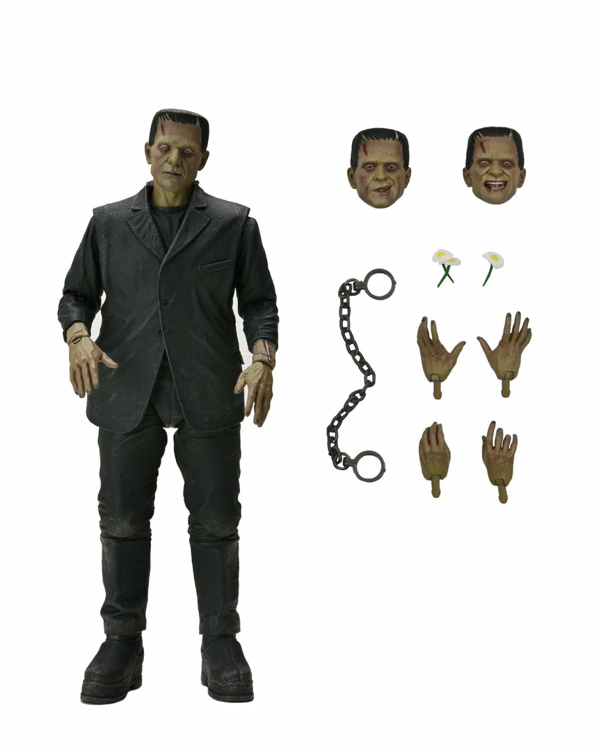 To celebrate the 90th anniversary of the acclaimed silver-screen classic Frankenstein, NECA proudly announces the triumphant debut of Universal Monsters in its Ultimate action figure line! The sculpt captures Boris Karloff’s poignant portrayal of the misunderstood monster in full colour. Standing in 7” scale, the figure comes in premium anniversary packaging with plenty of accessories!